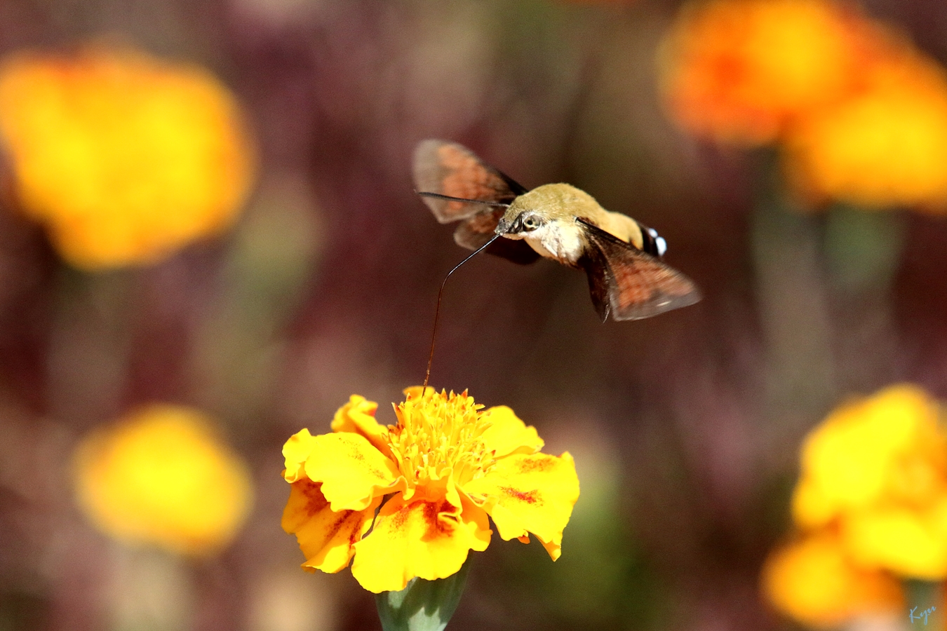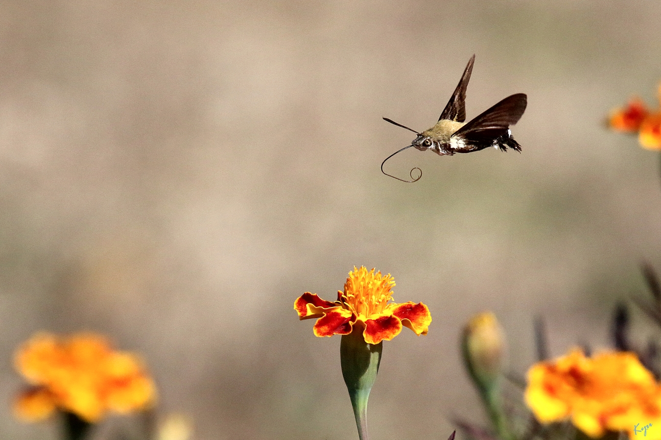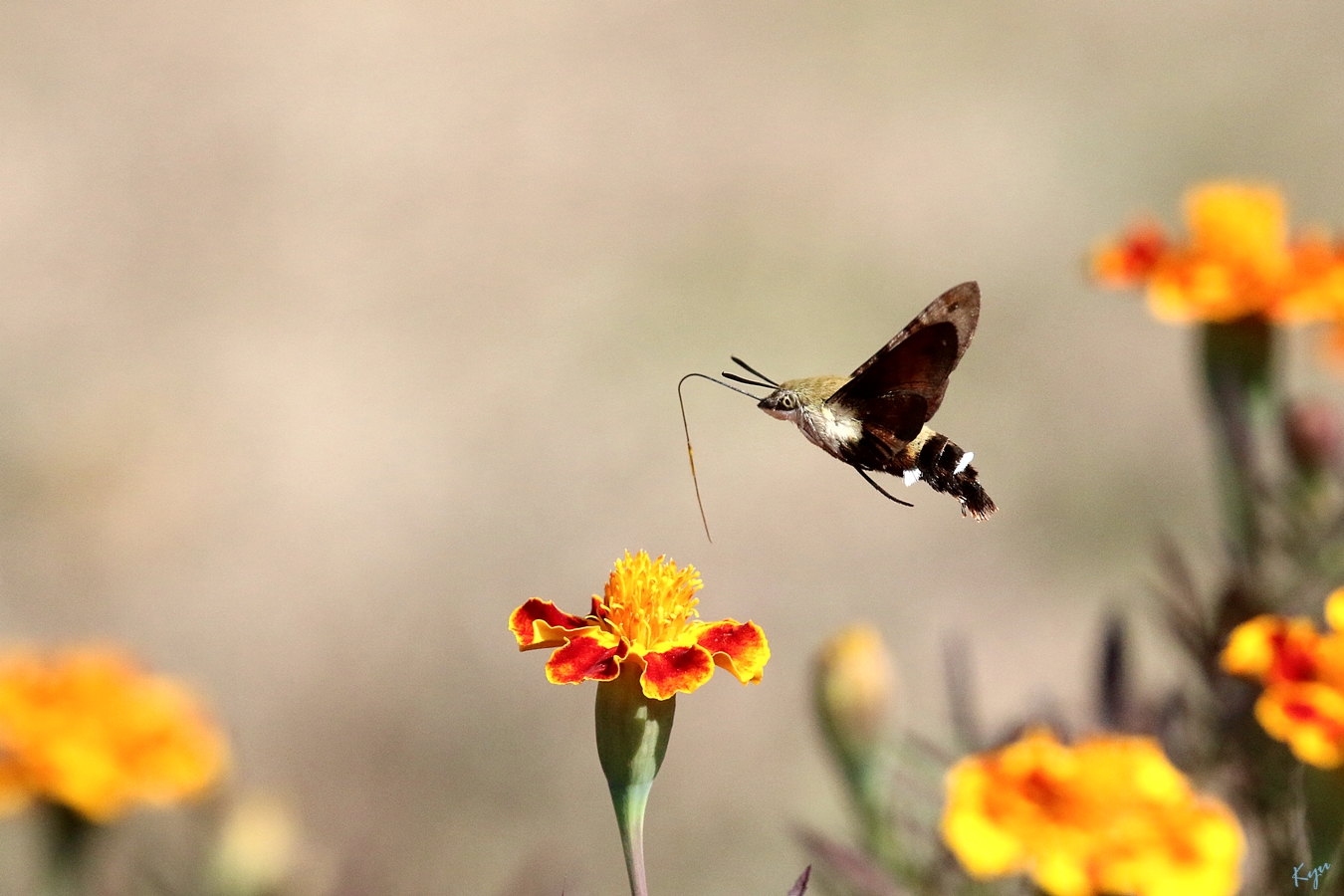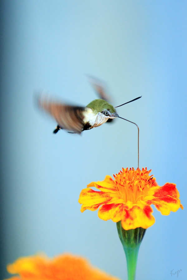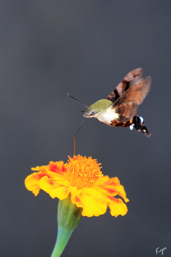 2014-10-09. 만수국에 찾아온 꼬리(?) 가리비나방.