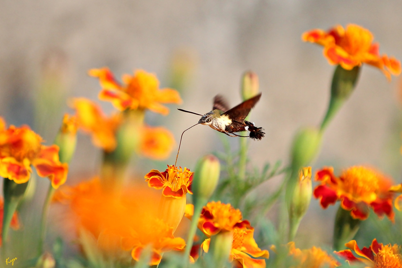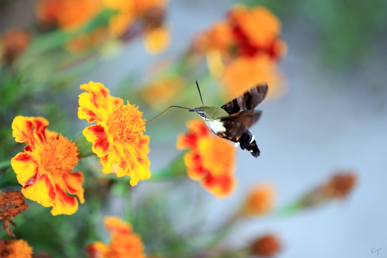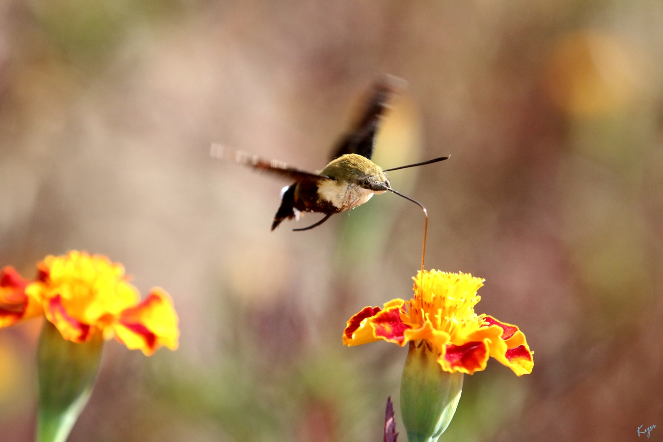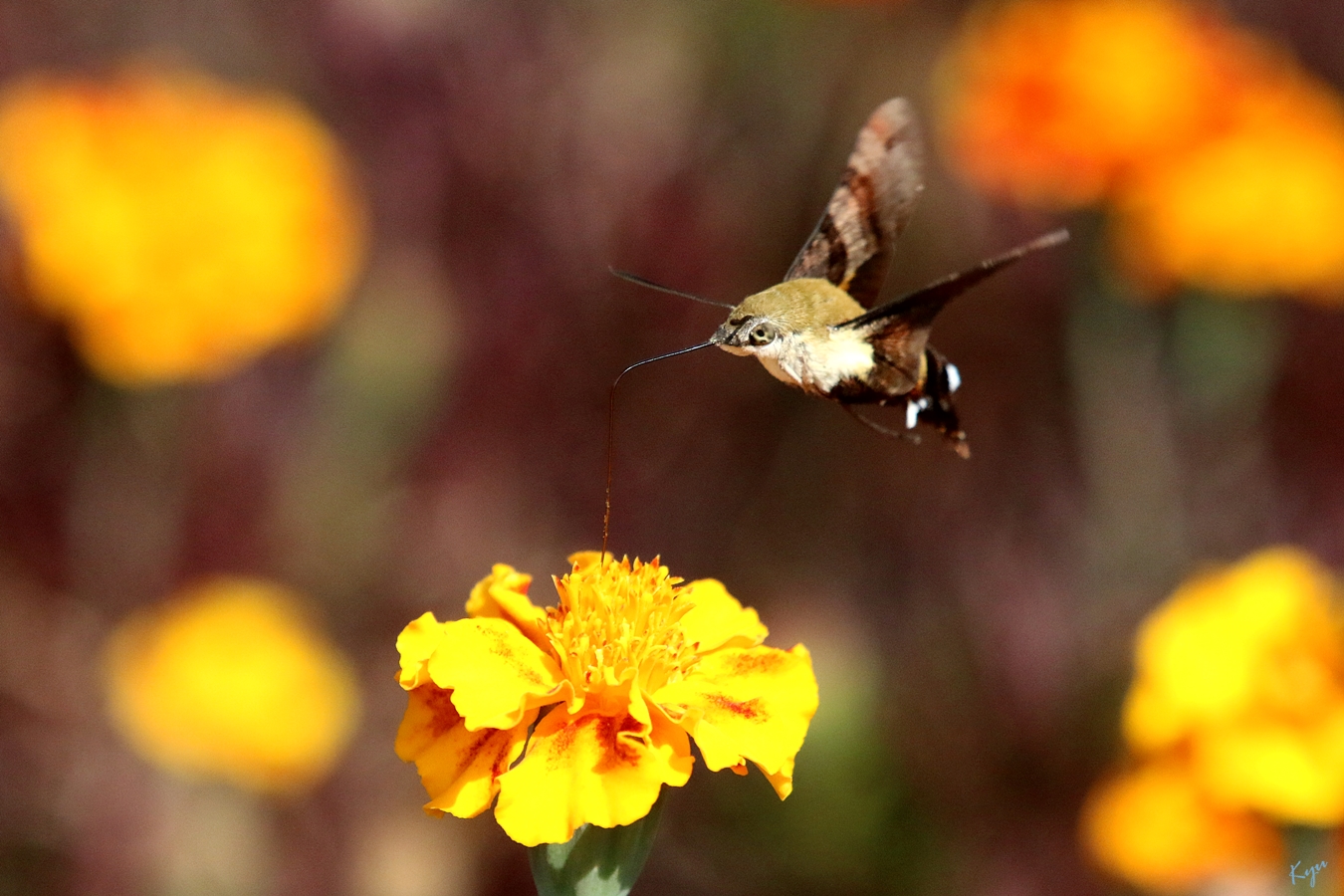 2014-10-09. 만수국에 찾아온 꼬리(?) 가리비나방.