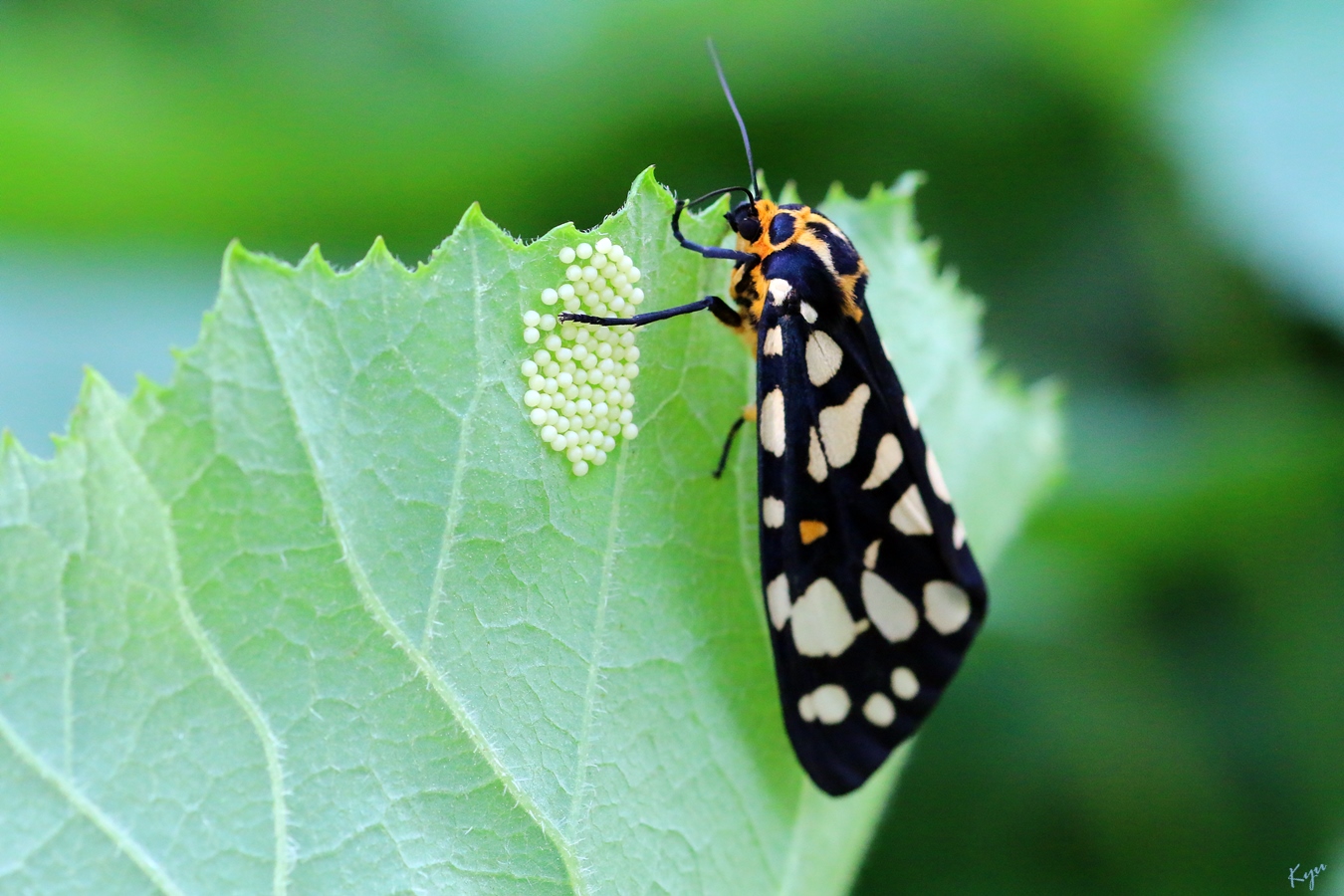 몇 분 동안 움직이지 않아서 잎사귀를 뒤집어 놓았더니 알을 많이 낳았다.