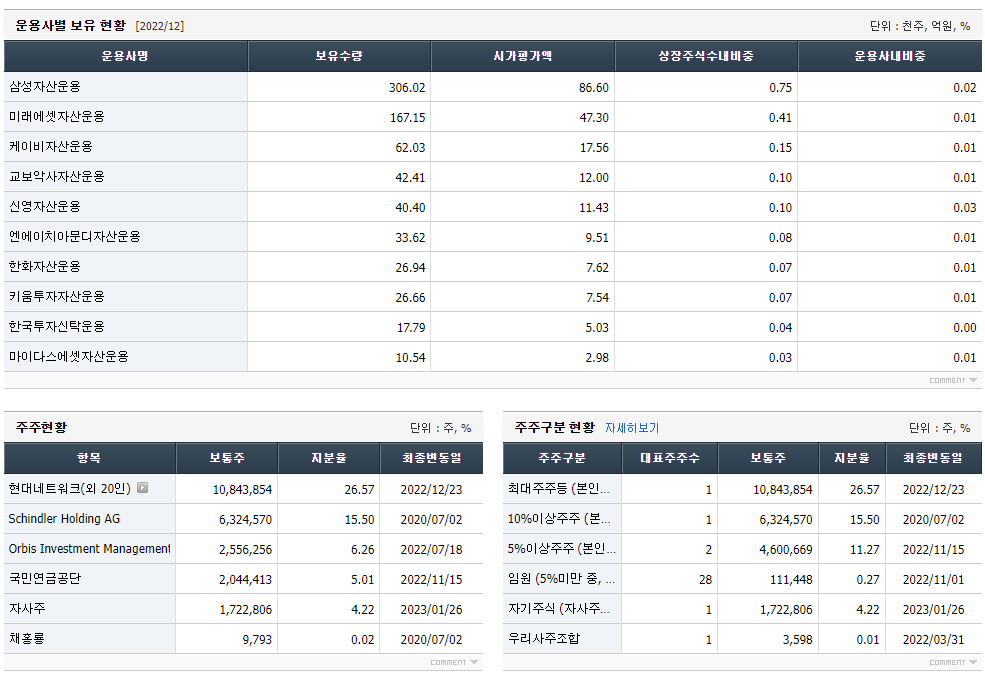 단기 투자를 할 때는 주주 현황에 대한 정보가 필요하지 않지만 장기적으로 회사 가치를 분석하고 분석할 때는 경영진의 현황과 역량도 살펴봐야 합니다. 대주주들을 직접 만날 수는 없지만, 그들이 어떻게 뭉치는지 보는 것은 좋다.